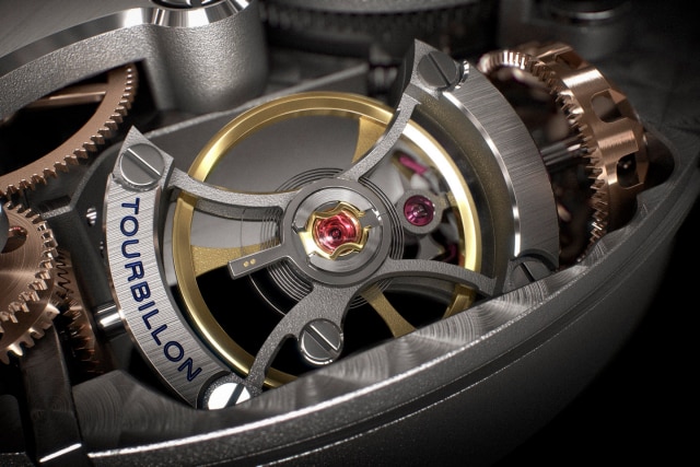 Différentiel GMT , Minutes , Petite seconde , Réserve de marche , Heures , Tourbillon