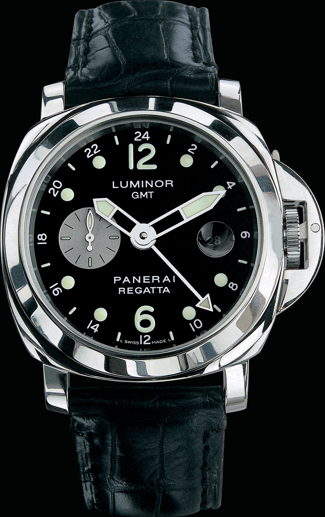 Black with luminous Arabic numerals and hour markers Indication of the second time zone on the outermost part. Seconds at 9 o’clock, date at 3 o’clock