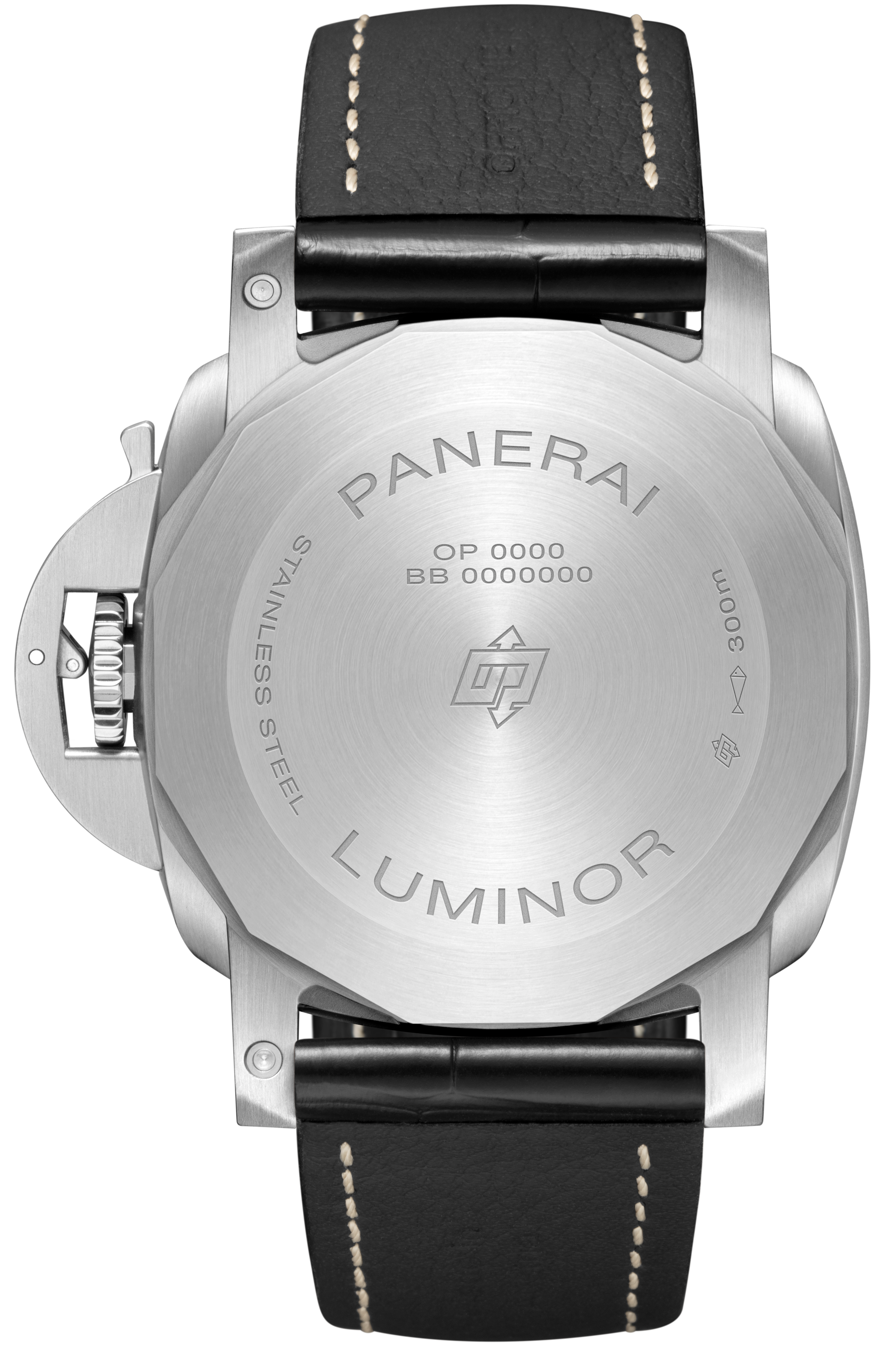 Black with luminous Arabic numerals and hour markers Date at 3 o'clock and small seconds at 9 o'clock.