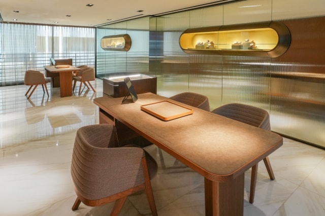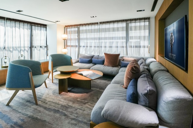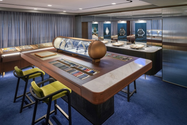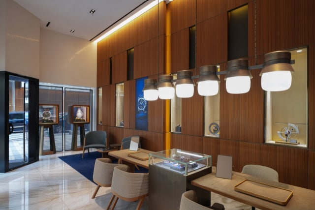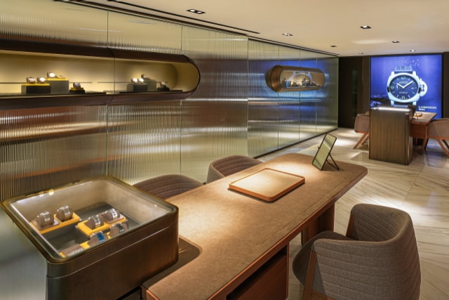 Situated in Tsim Sha Tsui, at the heart of the main luxury shopping district, the 367 square meters boutique has been redesigned and enlarged under the artistic guidance of the architect-designer Patricia Urquiola. Compared to all the other Panerai boutiques, the Hong Kong boutique is unique, with a distinctive external facade consisting of panels of undulating aluminium, fitted with a large wall clock with the characteristic Panerai dial. The store extends upwards over five floors and on the ground floor it has five large windows facing Canton Road and Peking Road, at the point where these two prestigious shopping streets cross. Patricia Urquiola, the celebrated Spanish designer based in Italy, has reinterpreted the aesthetic and technical codes of the watchmaker, respecting the brand’s identity in a timeless design. She has respected tradition with a look that is also modern and current, finding an appropriate link between the past and the future.