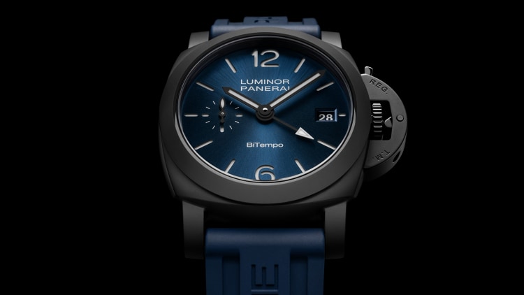 Una edición limitada de 80 piezas, disponible exclusivamente en línea a partir de noviembre. Esta Luminor GMT Ceramica captura la experiencia en alta tecnología de Panerai y la estética distintiva de Luminor en una dimensión más pequeña, para mejorar tanto la versatilidad como la durabilidad.