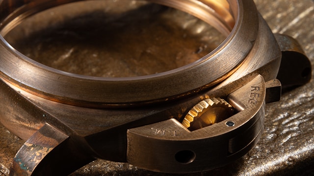 長きに渡るパネライの海との関わりと深く結びついた素材であるブロンゾは、メゾンの革新の精神と海への不変の絆を体現しています。