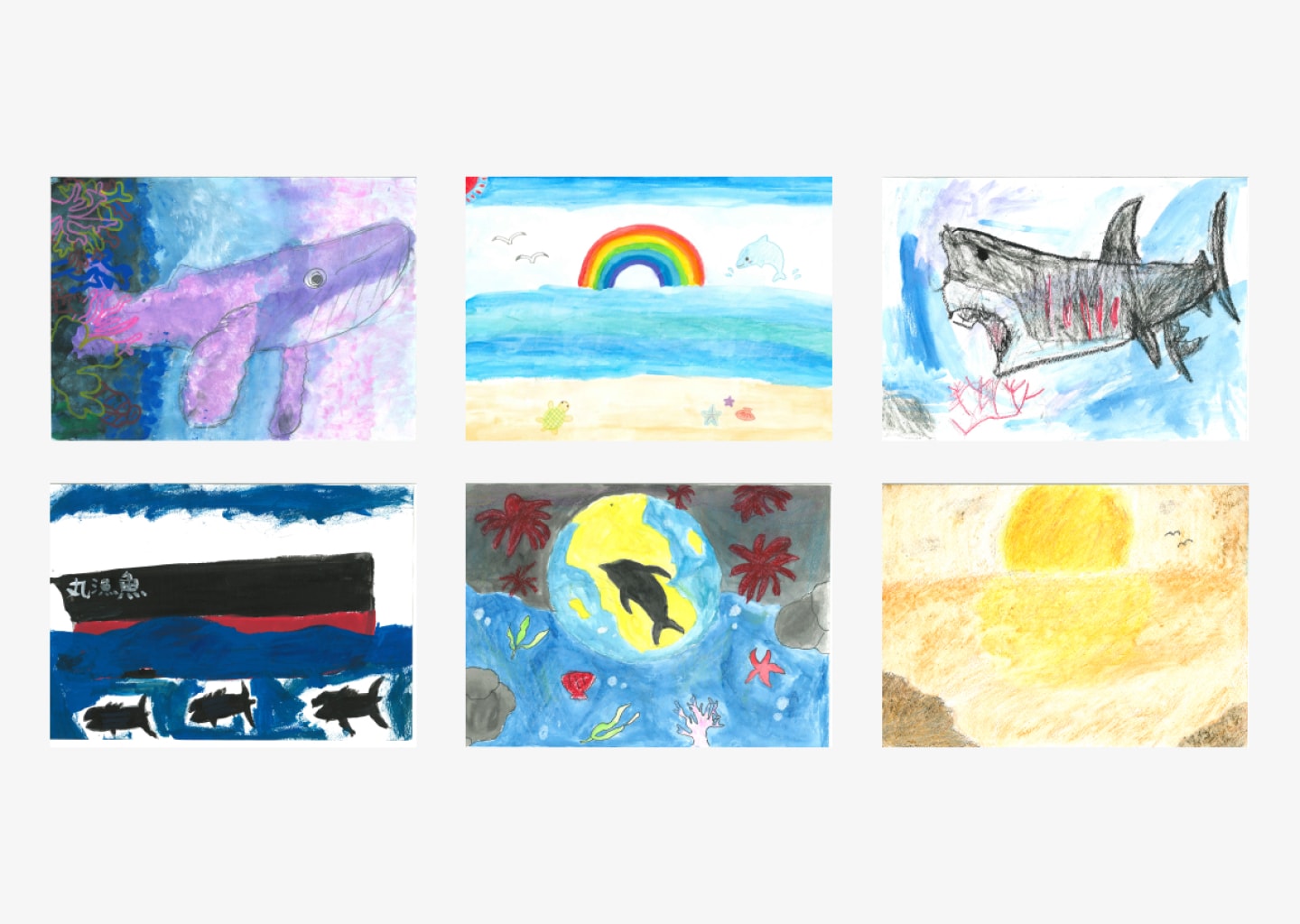 四方を海に囲まれ、海のめぐみを古来より享受してきたわたしたち。海の大切さを知ってもらうため、こども食堂に集う子どもたちに、自由な発想で海の絵を描いてもらいました。これらの絵をきっかけに、海へと想いを馳せ、プラスティックゴミを減らすなどの今すぐできることを始めてみましょう!