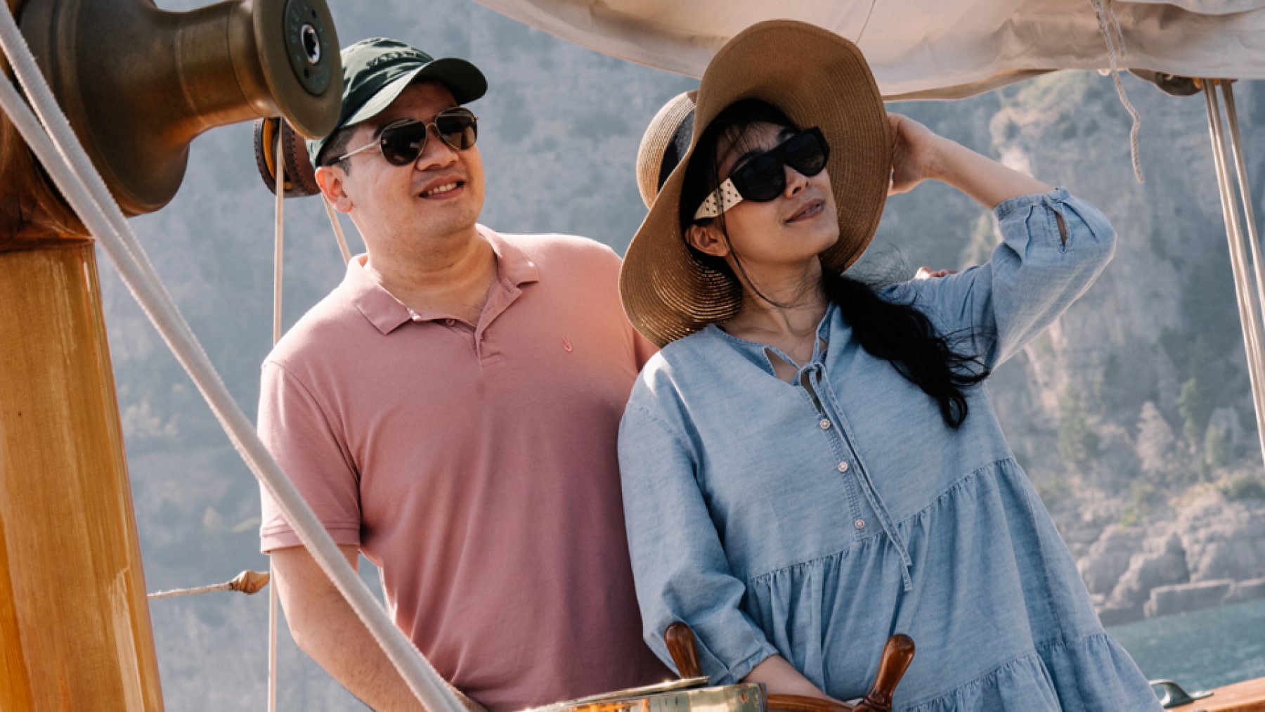 에일린의 돋보이는 미학적 요소는 바다와 맞닿는 흘수선과 버뮤다식 케치선에 설계된 돛입니다.