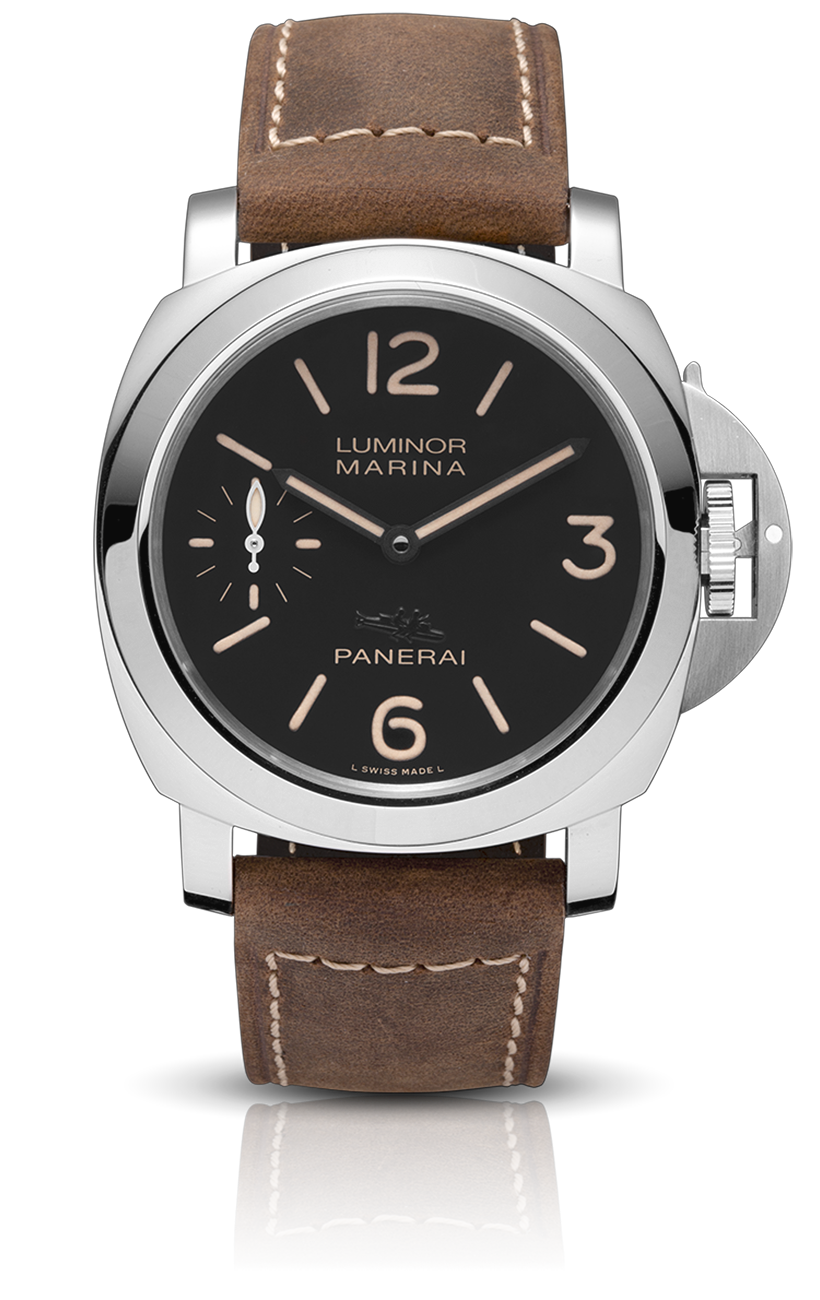 Hand-wound mechanical, Panerai OP II calibre, 16½ lignes, 17 jewels, Glucydur® balance, 21,600 alternations/hour. Incabloc® anti-shock device. Power reserve 56 hours It is tested and certified by C.O.S.C.