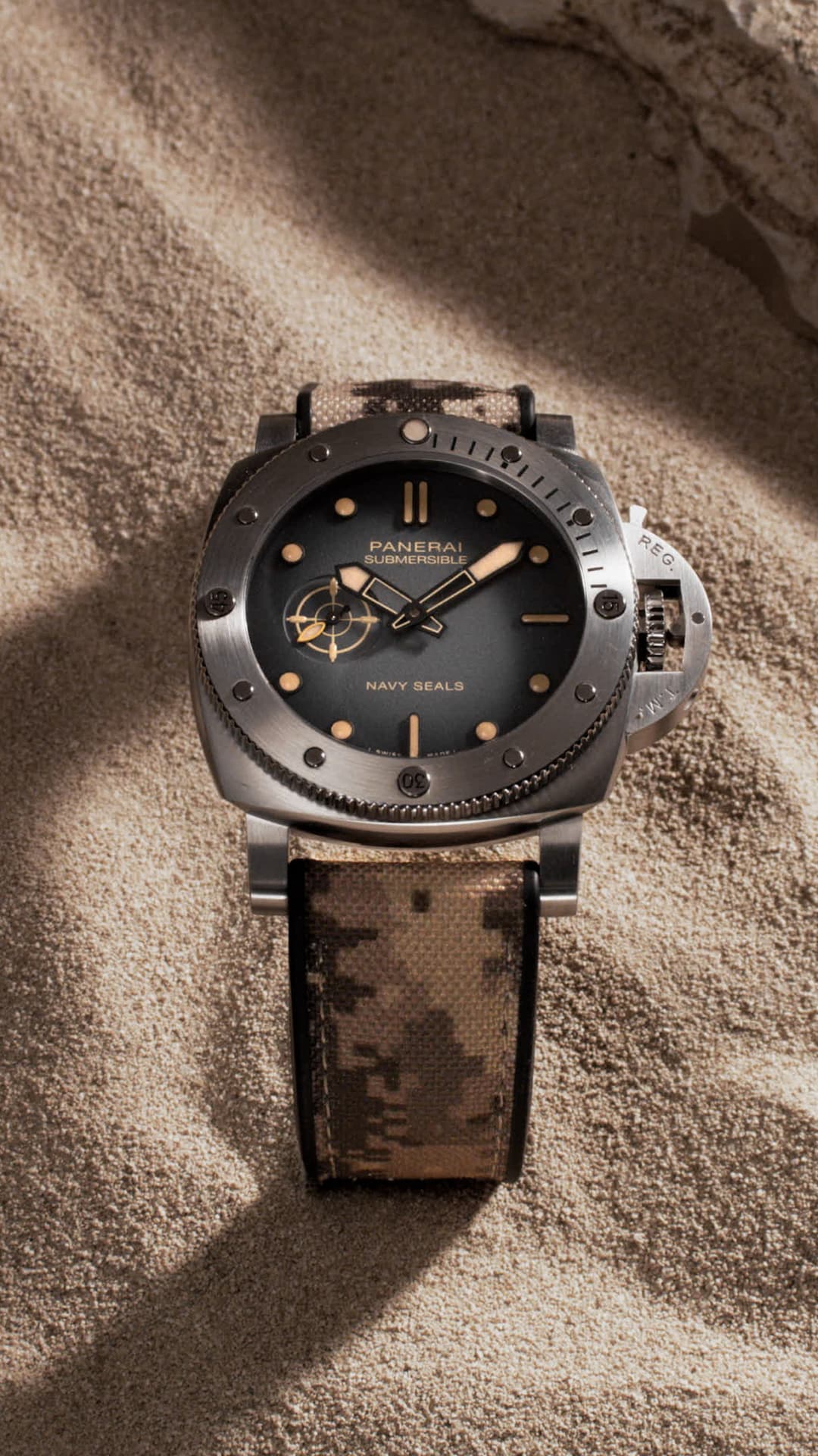 Ideals of challenge, bravery, team spirit, and adrenaline are at the core of Panerai’s values. The Navy SEALs , developed with the elite military force in mind, is a true testament to the fortitude and determination that both Panerai and the Navy SEALs embody.
