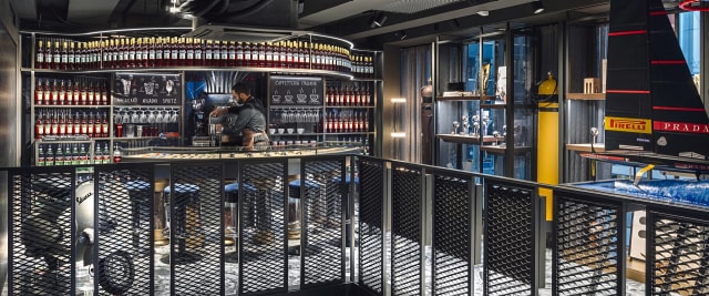 Panerai is the product of distinct traditions rooted in two countries: the sophistication of Swiss watchmaking artistry and an illustrious history of design inheritance from Italy. Situated at 21 Rue du Rhône in Geneva, in one of the most prestigious streets in the world, Panerai proudly unveils its unprecedented flagship store concept named “Modularità Espressiva”: two whole floors characterized by innovative modularity and Italian design blend physical and digital features to deliver a unique sensorial experience. Upon entering the boutique, Panerai’s iconic luminous green wall clock may be the first element to grab customers’ attention, but one of the most striking novelties is the presence of a large videowall on which product can be impressively projected and magnified. TV screens and touchscreen monitors are also available to display details that are of interest, while glassless lightbox displays break down the barrier between customer and product and invite them to interact with the watches.To reinforce this principle of experiential interaction, underneath the staircase leading to the second floor is a corner dedicated to the Laboratorio di Idee, a wall with portholes that “allows customers to touch and see Panerai’s philosophy of creating and developing new materials and movements in a transformative and sustainable way” states Creative Director Alvaro Maggini. This core vision comprised of sustainable building and transformation is echoed in the modular lounge on the second floor. A stunning room with Italian furniture and iconic design pieces adorn the bright space, complemented by Italian literature and design books and, of course, some of the most prestigious high complication and special edition Panerai references. The lounge can undergo a rapid transformation and become an elegant dining room in occasion of press and client events. When not in the lounge, clients are invited to visit the next-door bar area. The bar in Art Deco style comprises one of the main elements in this area, a dual space that functions both as a café and drinks bar as well as an interactive rotating shelf through which customers can play and discover their favorite strap and case combination. A moveable platform follows the curve of the bar and allows customers to enjoy an Italian coffee or signature aperitivo during the experience. The bottom of the bar structure is composed of ten containers holding ten different coffee beans from around the world, turning a core component of Italian culture and habit into an impressive piece of art. An original Vespa from 1956 and a beautiful library housing glassless product displays and Italian vintage elements complete the setting. A modular stand-alone display shelf area can be used to highlight the novelties of the moment or major partnerships: when needed however, these shelves can be folded down onto themselves to create further walking space. The peak of the floor’s animation however is in the shape of a curious periscope, behind which customers can see relevant Panerai stories unfold. This new creative concept, “Modularità Espressiva”, will be soon adopted in Panerai boutiques all over the world, redesigning the brands’ relationship with its customers.