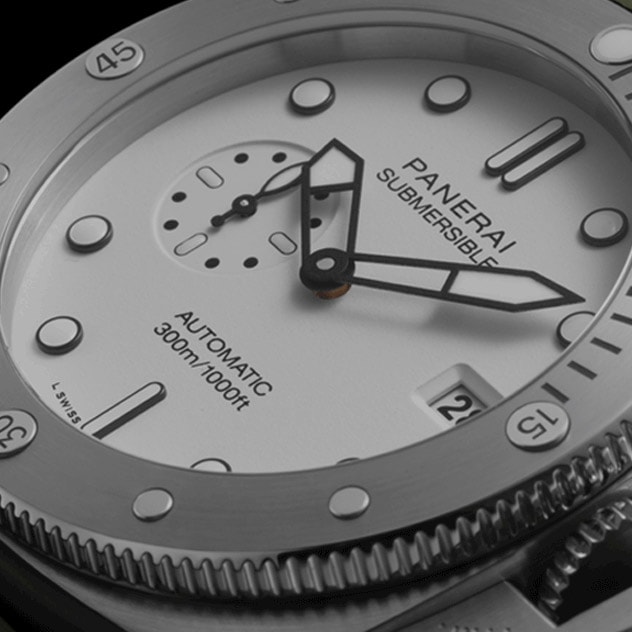 Submersible系列潛水腕錶以BMG-TECH™、Carbotech™及鈦金屬製作,大膽的設計散發著運動風格,並配備單向旋轉錶圈計算 下潛時間