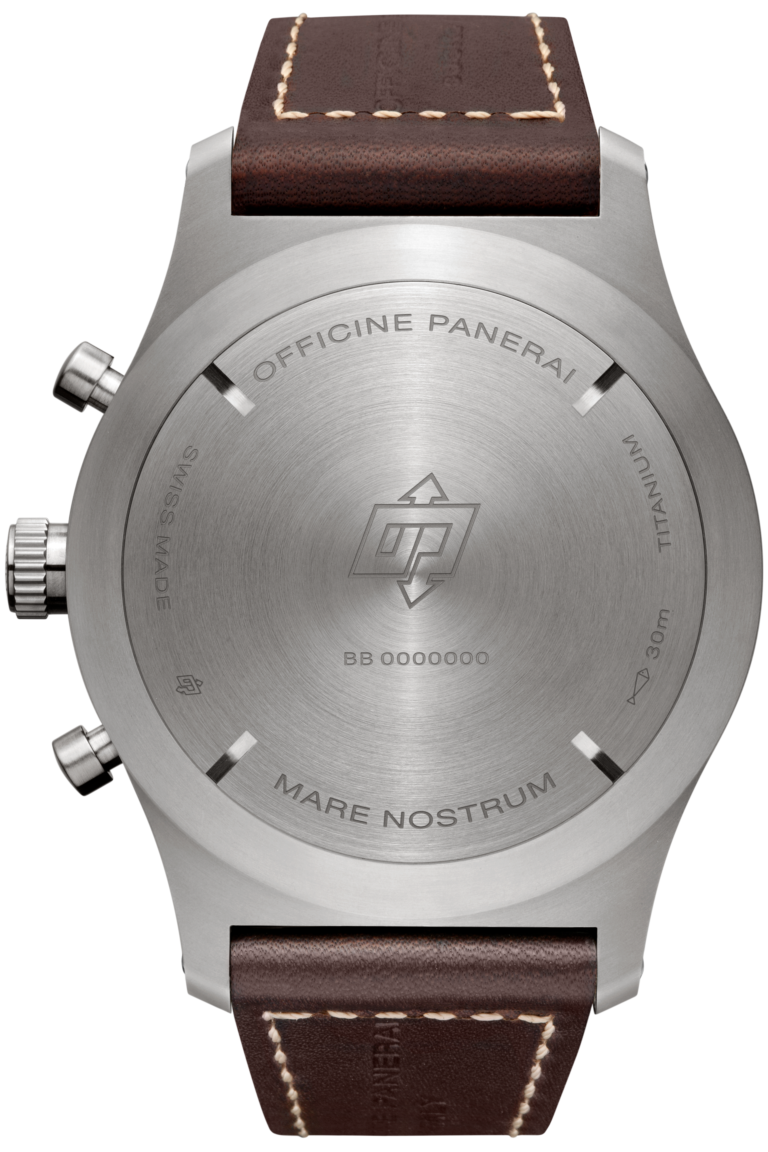 Hand-wound mechanical, Panerai OP XXV calibre, 12¾ lignes, 22 jewels, Glucydur® balance, 18,000 alternations/hour. Incabloc® anti-shock device. Swan’s neck regulator. Power reserve 55 hours Côtes de Genève decoration on the bridges