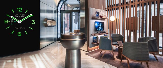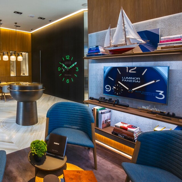 Panerai’s boutique in Los Angeles, California, is located in Beverly Hills’ shopping temple, on Brighton Way near Rodeo Drive. The boutique’s display area is characterised by an Italian design inspired by the sea, with windows that flow like waves, decorative details reminiscent of deep-sea divers’ suits, and showcases shaped like portholes recalling the interior of a yacht. Among the materials used in the Californian store, teak and steel predominate, standing out against metallic mesh panels and back-painted glass walls, in honour of the link between Panerai and the sea.