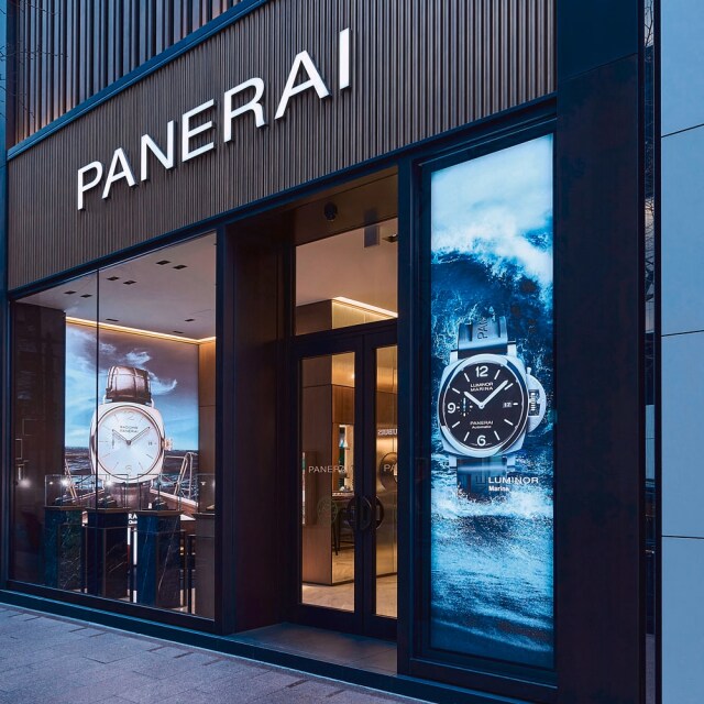 Située au centre de Ginza, quartier phare du shopping de luxe au cœur de Tokyo, la boutique japonaise Panerai se trouve sur Namiki Street, où la plupart des grandes enseignes internationales de la mode et de la joaillerie ont élu domicile ces dernières années. Dotée d'un design typiquement italien, la boutique évoque le monde de la mer, emblématique de l'histoire d'Officine Panerai depuis sa première collaboration avec la Marine italienne. Dans la tradition des boutiques Officine Panerai du monde entier, les espaces intérieurs se distinguent par la présence de teck et d'acier, de fenêtres aux en forme de hublots et de lignes ondulées évoquant à la fois les vagues de l'océan et la coque des voiliers les plus racés.