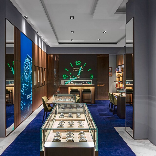 Located in Hudson Yards, the boutique embodies the brand's center pillars, such as the world of the sea and the technicity and innovations empowering our Modern Heroes. These elements blend seamlessly to capture the essence of the Maison, taking customers on a sensory journey that merges luxury, heritage, innovation, and the spirit of discovery. Upon entering the boutique, the iconic luminescent clock, retro illuminated to recall the Super-Luminova® fluorescence, a shared feature in all Panerai watches will grab your attention. The layout is designed to narrate the brand’s story, accompanying customers through the different collections of the Panerai universe. While shopping, clients are immersed in a world of technical prowess and welcomed by the inimitable allure of Italian hospitality.