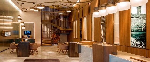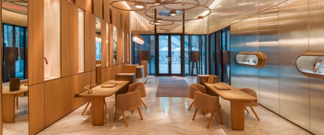 The Panerai boutique is situated in the heart of the Miami Design District, an area of the city which has recently been transformed into an exclusive luxury shopping destination. The flagship store is in the south-west corner of the Design District’s Palm Court and has seven windows, five on the ground floor and two on the upper floor. The interior design reflects a functional, simple idea of design, like that of the brand’s watches. Patricia Urquiola, the famous Spanish designer based in Italy, has reinterpreted the aesthetic and technical codes of the watchmaker, paying heed to its identity and timeless design. The designer has succeeded in respecting tradition with a look that is modern and current, finding an appropriate link between the past and the future. One of the most distinctive elements of the boutique is the custom chandelier: a suspended series of disks, rings and lamps devised and designed by Patricia Urquiola, specially made and inspired by Panerai movements. The second floor has been deliberately designed as a private area for exclusive collectors and an exhibition space to host works by contemporary artists and designers as well.