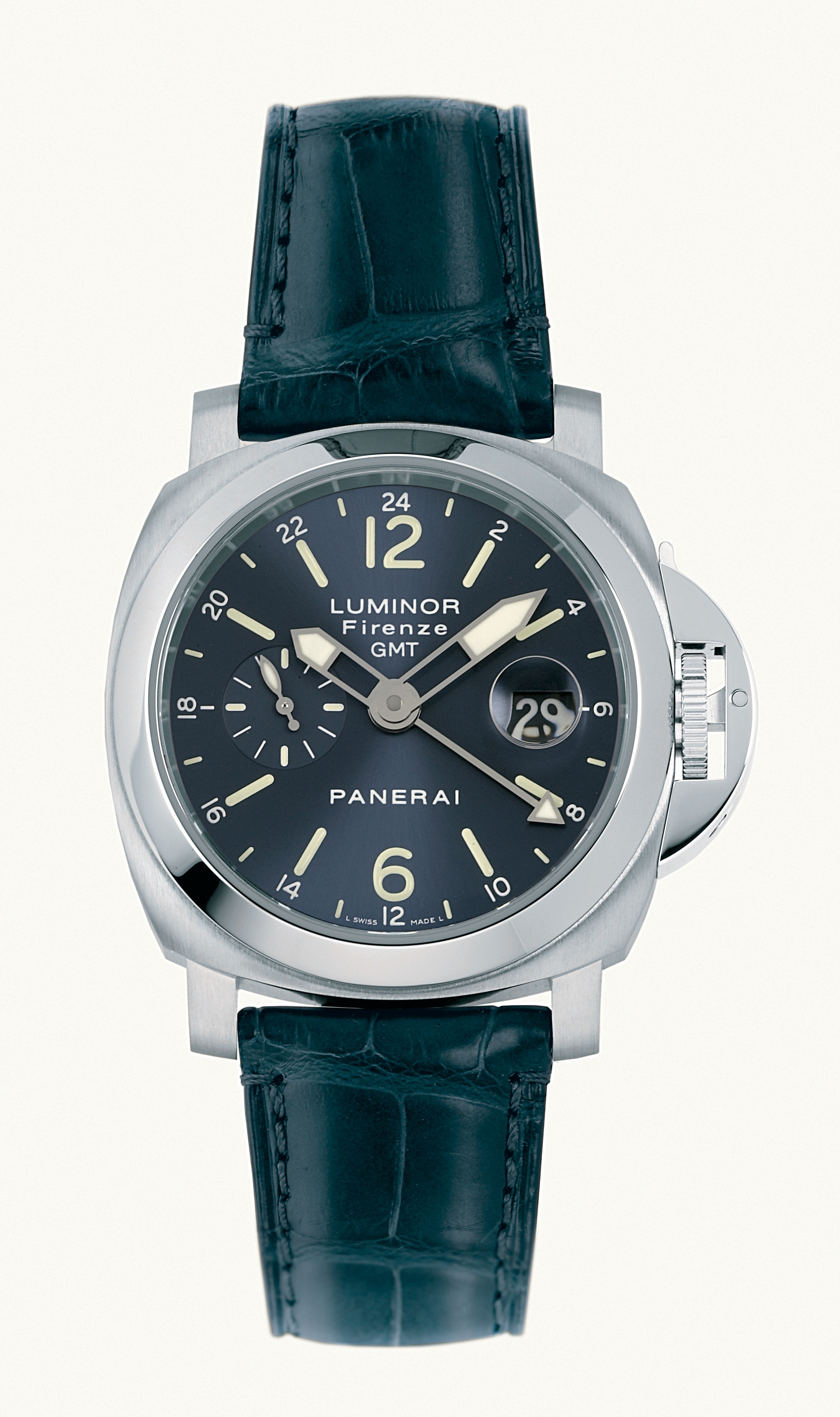 藍色,附夜光小時標示及阿拉伯數字。9點鐘位置設小秒盤,3點鐘位置設日期顯示。邊緣設24小時顯示